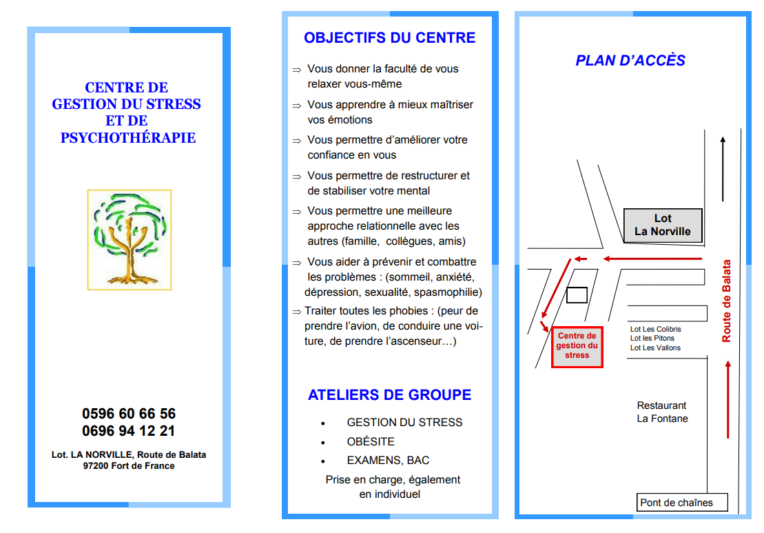 Le centre de gestion du stress et de psychothérapie de M. Jean Charles-Donatien vous accueille pour vous aider à gérer votre stress au quotidien.